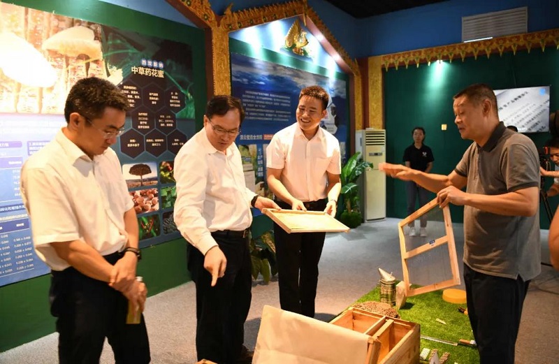 楊金成一行參觀了滇云蜜語公司生產線、品控中心等地,了解了產業(yè)扶貧基金使用和蜂蜜事業(yè)帶動脫貧情況,對滇云蜜語公司帶動村集體經濟發(fā)展、促進檔卡戶脫貧增收等模式給予充分肯定;在磨憨鎮(zhèn)尚勇村南坡村小組檢查了援建的茶葉初制所項目,并慰問有關建檔立卡戶,鼓勵他們增收致富;在中國船舶磨憨尚岡希望小學調研了教學樓、標準塑膠運動場等幫扶項目及教學質量提升情況,勉勵孩子們努力學習、堅定志向,將來回報家鄉(xiāng)和社會;對物資公司所屬勐臘公司開展貿易業(yè)務和消費扶貧情況以及昆船公司智慧停車場等項目情況進行了調研。