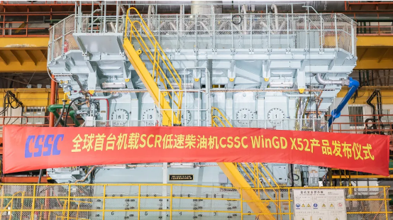 7月22日,由中國船舶集團有限公司旗下中船動力(集團)有限公司自主研發、大連船用柴油機有限公司建造的全球首臺機載SCR(選擇性催化還原系統)船用低速機CSSC WinGD X52正式向全球發布。工信部黨組成員、總工程師田玉龍,中國船舶集團黨組副書記、總經理楊金成出席發布儀式并講話。國家相關部委、地方政府、船級社、航運公司、造船企業等相關領導和專家出席發布儀式。