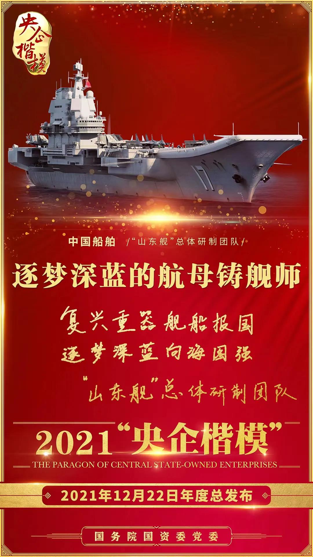 12月22日,國務(wù)院國資委黨委舉行2021年第二批“央企楷模”發(fā)布暨年度總發(fā)布儀式,中國船舶“山東艦”總體研制團(tuán)隊(duì)榮獲2021年“央企楷模”榮譽(yù)稱號(hào)。繼“奮斗者”號(hào)萬米載人潛水器研發(fā)團(tuán)隊(duì)獲評(píng)2020年“央企楷?!睒s譽(yù)稱號(hào)后,中國船舶集團(tuán)再獲此殊榮。