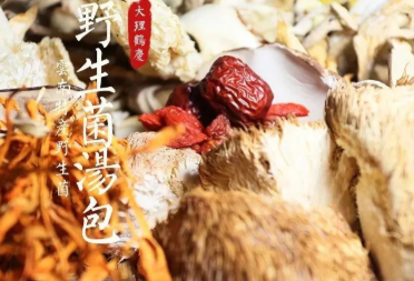 九珍菌湯包原材料包括羊肚菌、竹蓀、美味牛肝菌、姬松茸、茶樹菇、雞油菌、蟲草花、野生菌粉包(野生松茸,牛肝菌,黃牛肝所提煉)、調味包(紅棗、枸杞)。一份夠三至五人一餐的食用量,特選云南菌,一鍋香味濃濃的菌湯,養生保健、湯香味鮮、營養豐富、口感極佳。