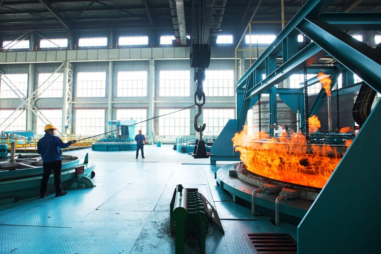 熱處理工人們面對著高達(dá)800攝氏度的高溫火焰,毫無懼色,依然穩(wěn)定地操作著設(shè)備。