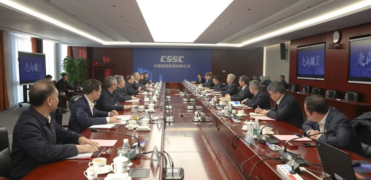 徐鵬對段向東一行的來訪表示歡迎,并介紹了集團(tuán)公司業(yè)務(wù)發(fā)展情況。徐鵬表示,中船集團(tuán)與中鋁集團(tuán)長期以來保持良好合作關(guān)系,交流合作廣泛、基礎(chǔ)深厚、前景廣闊。中船集團(tuán)將按照“1-1-7-8”總體思路奮力推進(jìn)世界一流船舶集團(tuán)建設(shè)邁上新臺階,希望雙方建立健全長效溝通合作機制,協(xié)同推進(jìn)關(guān)鍵技術(shù)、裝備研制攻關(guān),深化多領(lǐng)域、多層次合作,共同服務(wù)好國家重大戰(zhàn)略。