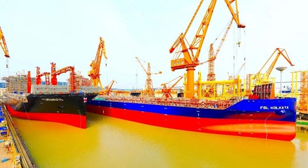????4月10日,中國船舶集團(tuán)旗下黃埔文沖為希臘COSMOSHOP公司建造的1500TEU.GO集裝箱船4號(hào)船H5655船以及為新加坡太古公司建造的2350TEU.C集裝箱船4號(hào)船H5529船