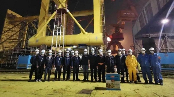 ????同一天,隨著最后一塊防沉平臺(tái)箱梁分段順利吊裝,黃埔文沖非船團(tuán)隊(duì)已經(jīng)連續(xù)奮戰(zhàn)十天十夜。至此,為保利長大公司建造的明陽華西單樁穩(wěn)樁平臺(tái)主體工程