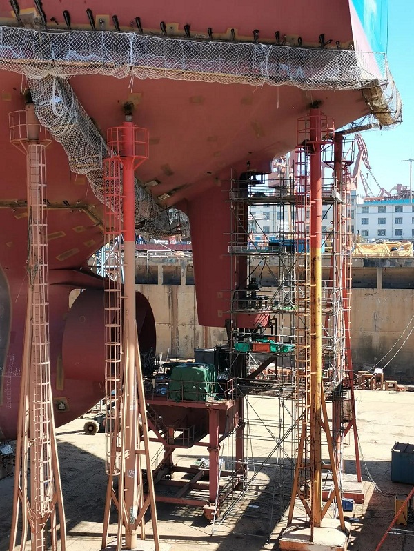 △軸舵系施工進行中