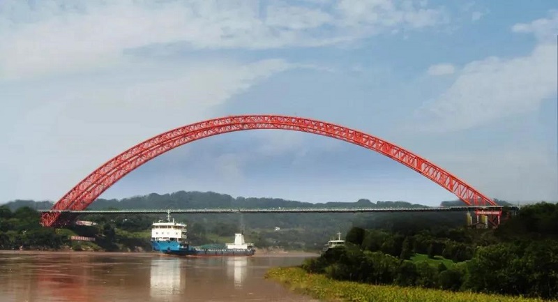 2002年1月, 簽訂巫山長(zhǎng)江大橋合同。巫山長(zhǎng)江大橋位于長(zhǎng)江三峽段的巫峽入口處,是一座鋼管中承式拱橋,橋面凈寬19米,雙向4車(chē)道,主跨492米,被稱(chēng)為"渝東門(mén)戶(hù)橋""渝東第一橋",創(chuàng)造了多項(xiàng)世界紀(jì)錄。