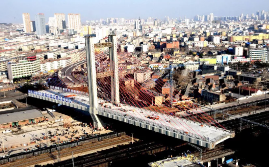 ▲2019年5月,完成濟(jì)南貨運(yùn)大北環(huán)斜拉橋250000千牛轉(zhuǎn)體球鉸的的研制、設(shè)計、制造。本次鐵路斜拉橋轉(zhuǎn)體重量,單球鉸直徑均居鐵路橋梁世界之最。