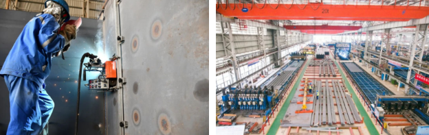 以U肋雙面全熔透焊接技術和先進視覺識別焊接機器人技術為基礎,全新規劃了國內建設規模最大、建設標準最高、配套最完善的橋梁板單元智能制造車間,解決鋼橋正交異性鋼橋面板結構疲勞病害等技術難題。