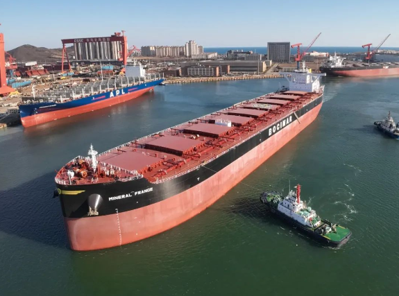 今年上半年,兩型船先后獲得訂單,30萬噸VLCC、32.5萬噸甲醇雙燃料礦砂船等多型綠色燃料船型同步接單。目前,北海造船21萬噸散貨船和32.5萬噸礦砂船手持訂單量穩居全球首位,新能源動力船舶覆蓋了LNG、甲醇、氨燃料等。