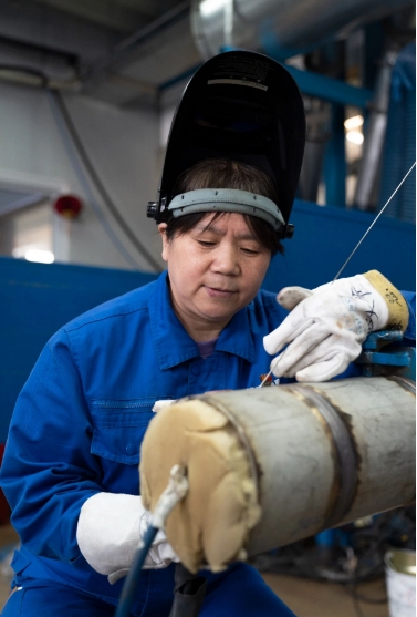 至今,朱瑞霞已經參與了“遠望”系列船、“雪龍2”號、南昌艦等國家重點項目的焊接工作。她說,當時有人高度評價稱:“你焊的管子可以免檢?!钡珘毫σ搽S之而來,“我當時就想,船一出海就是半年,我的焊接要是出問題,就是人命關天?!闭且驗檫@種“軸”,朱瑞霞先后攻克了鎳銅管焊接變形、HDR不銹鋼焊接、鈦合金焊接等一系列高難度問題。她主導研發了十余項焊接專利技術,攻克了薄壁管道焊接難題,還創新研制了特有的工裝,獲得外國專家的認可和推廣應用。