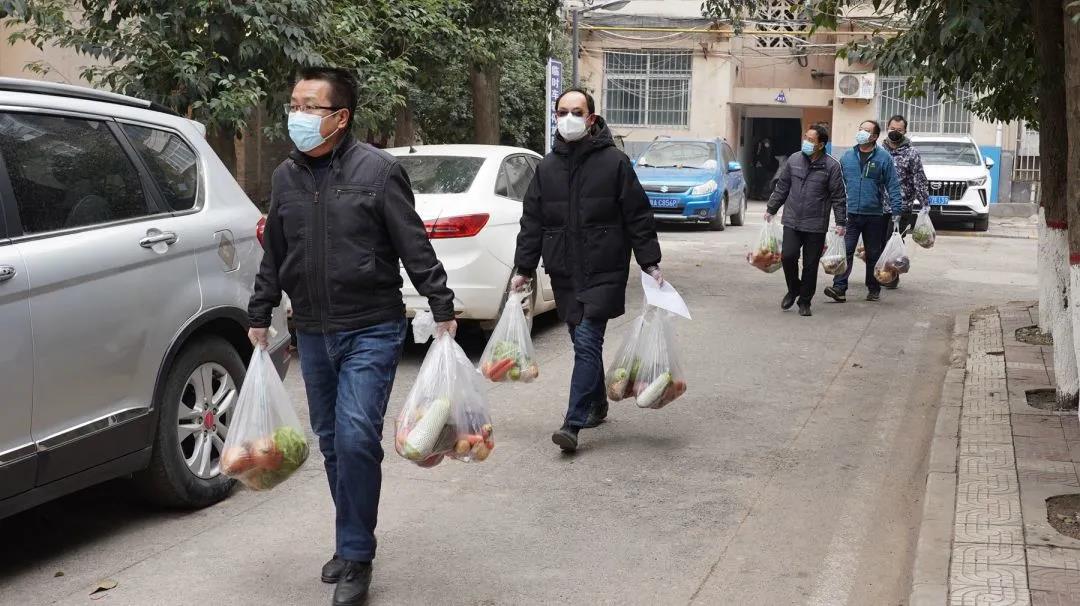 元旦前,東儀科工100余位黨員、職工火速集結(jié)組成志愿團(tuán)隊,有序?qū)?6輛汽車運來的物資進(jìn)行卸載、分裝,忙而不亂,將一袋袋蔬菜分樓棟、分單元送到居家隔離的住戶手中,確保3200余戶居民在新的一年到來之前收到政府的愛心物資,滿足基本生活需求。